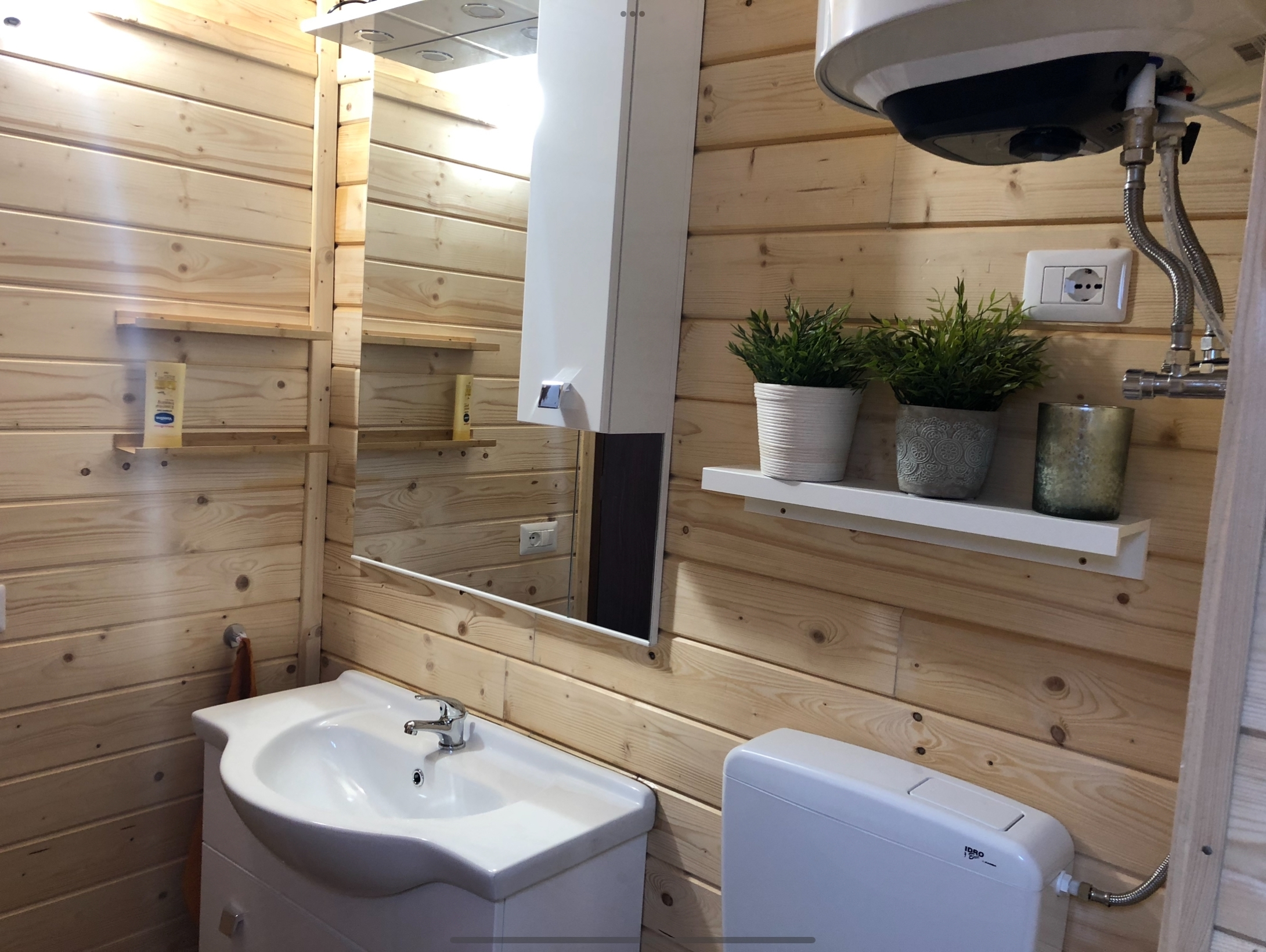 douche, wastafel met badmeubel en toilet.